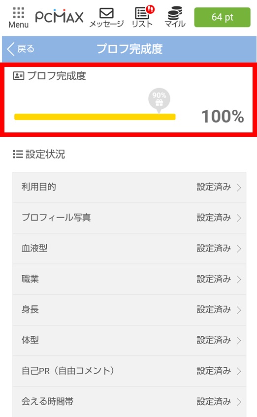 ●プロフィールを完成させる
