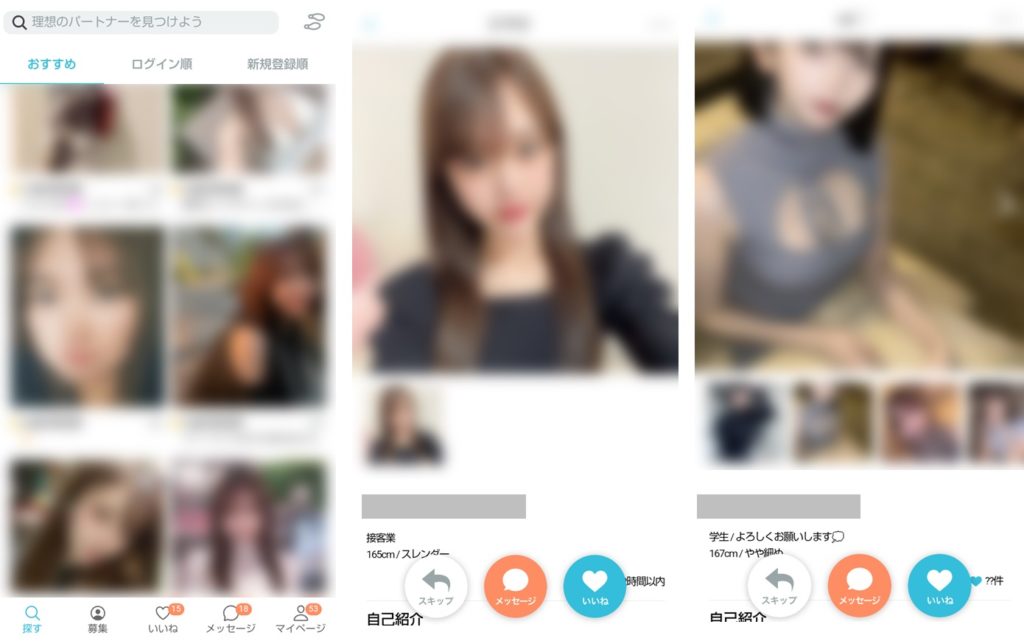 パパ活アプリの女の子たちは、非常に積極的です。みんな活動目的でやっていますので、登録した時点からどんどん「いいね♡」が来ます。出会い系アプリは、業者の場合がありますが、そこは安心してください。100%本人です。登録の際、身分証の提示もありますし、アプリ内パトロールもしっかりされています。