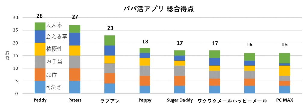 では、まず各項目を5点満点で評価した際の総合得点です。30点満点で表現しました。