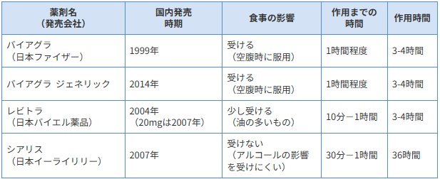 バイアグラ以外にも、いくつか種類があって、こんな感じです。